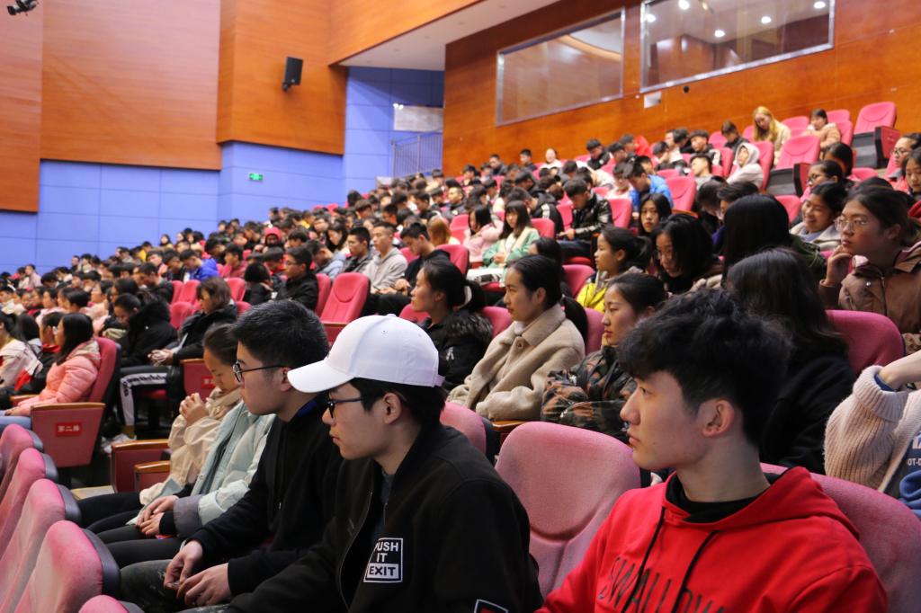 2019年3月4日下午4:20,公司在校影院举行了2018级军训动员大会。参加本次会议的有体育公司党总支副书记王进副教授、学工办主任彭波老师及辅导员石娇娜、崔开文老师和2018级全体新生。本次会议由石娇娜老师主持,王进副书记主讲。