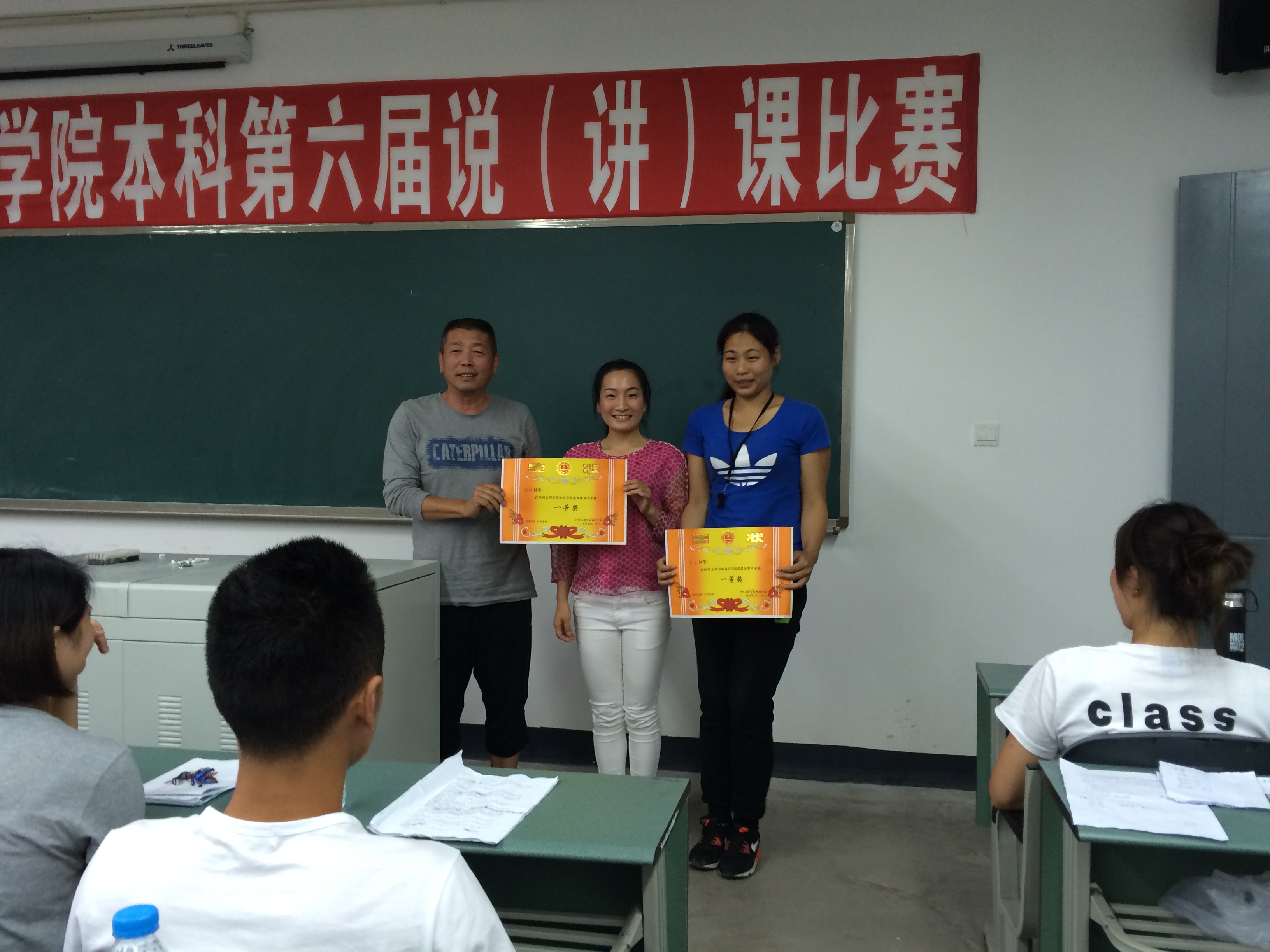 选手们通过精心准备,分别从课程与教材、教学目标与内容、教学进程设计、教学方法与学法、教学预期效果等方面进行详细讲解。最终,经过评委认真评审,2012级5班罗兰与2012级4班程静同学脱颖而出,分别荣获本届说课、讲课比赛一等奖,蒋昌琴、冯婷、袁超同学荣获二等奖;李会、张玲、王正平、胡金彪同学荣获三等奖。