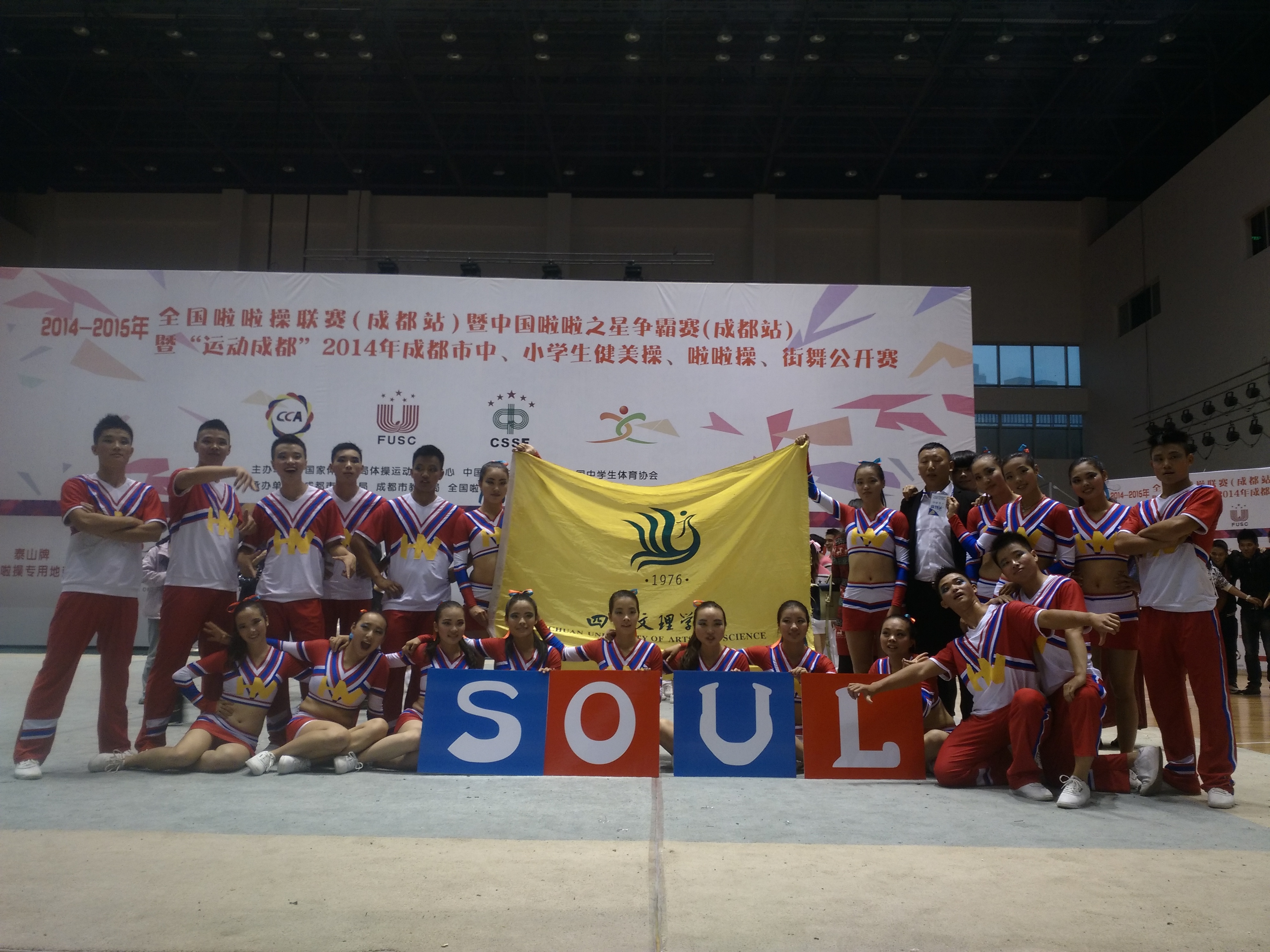2014年10月25日至26日2014-2015年全国啦啦操联赛(成都站)在成都中医药大学(温江校区)隆重举行。公司永利集团304官网两支参赛队soul team和hot team唐绪明老师带领下参加了比赛。两支队伍经过顽强拼搏,分别以第二名的优异成绩进入了决赛。