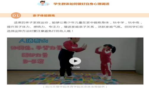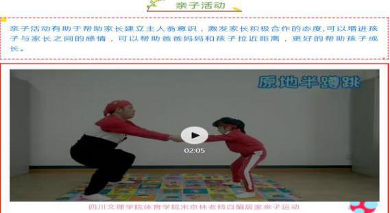 在居家抗疫期间,为了融洽家庭亲子关系,活跃家庭气氛我自编了《居家亲子运动操》。此套亲子操在公司职工中获得广泛赞誉,还被“达州教育”微信公众号和“营山县城守一小”微信公众号转载和推广,引起较好的社会反响。
