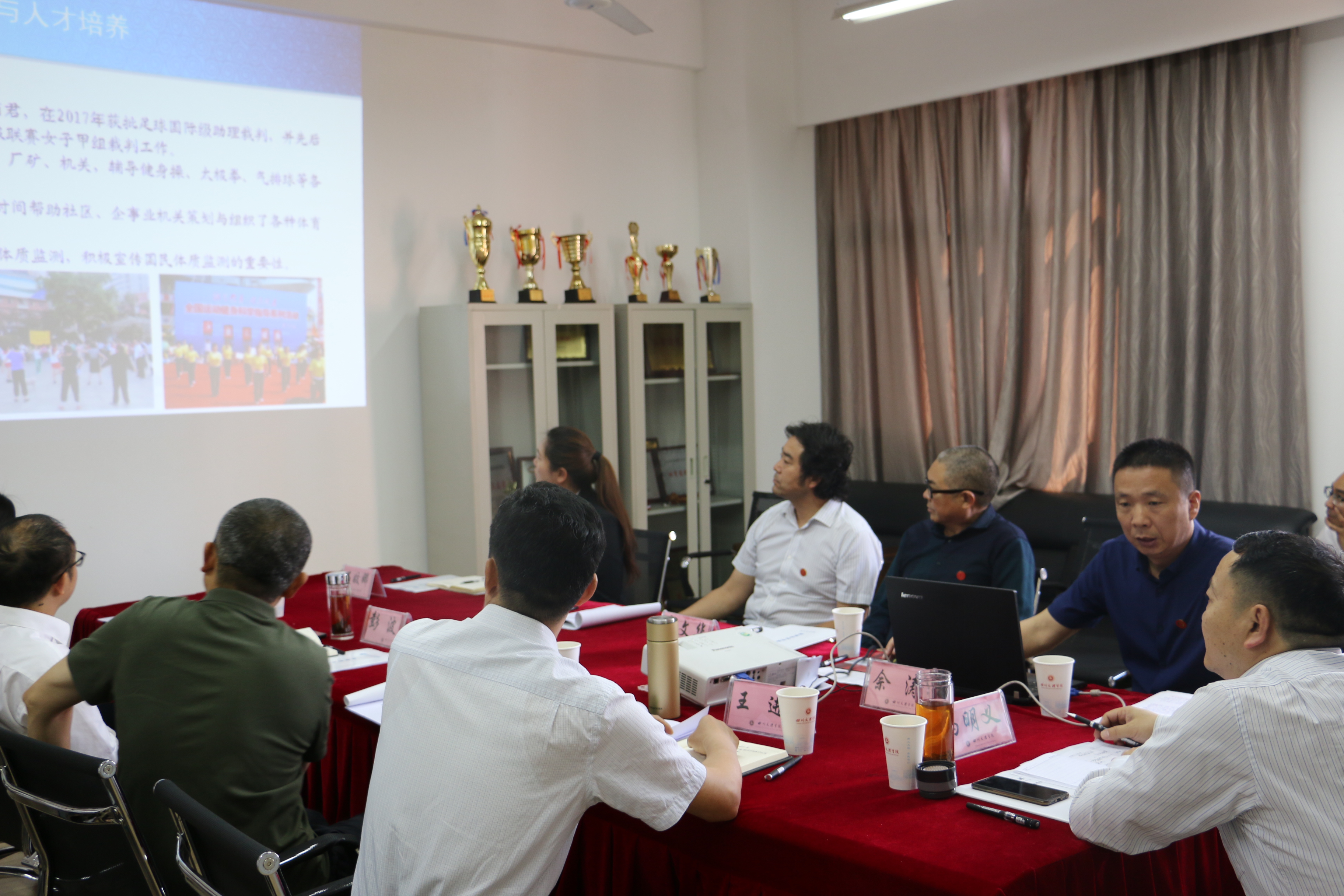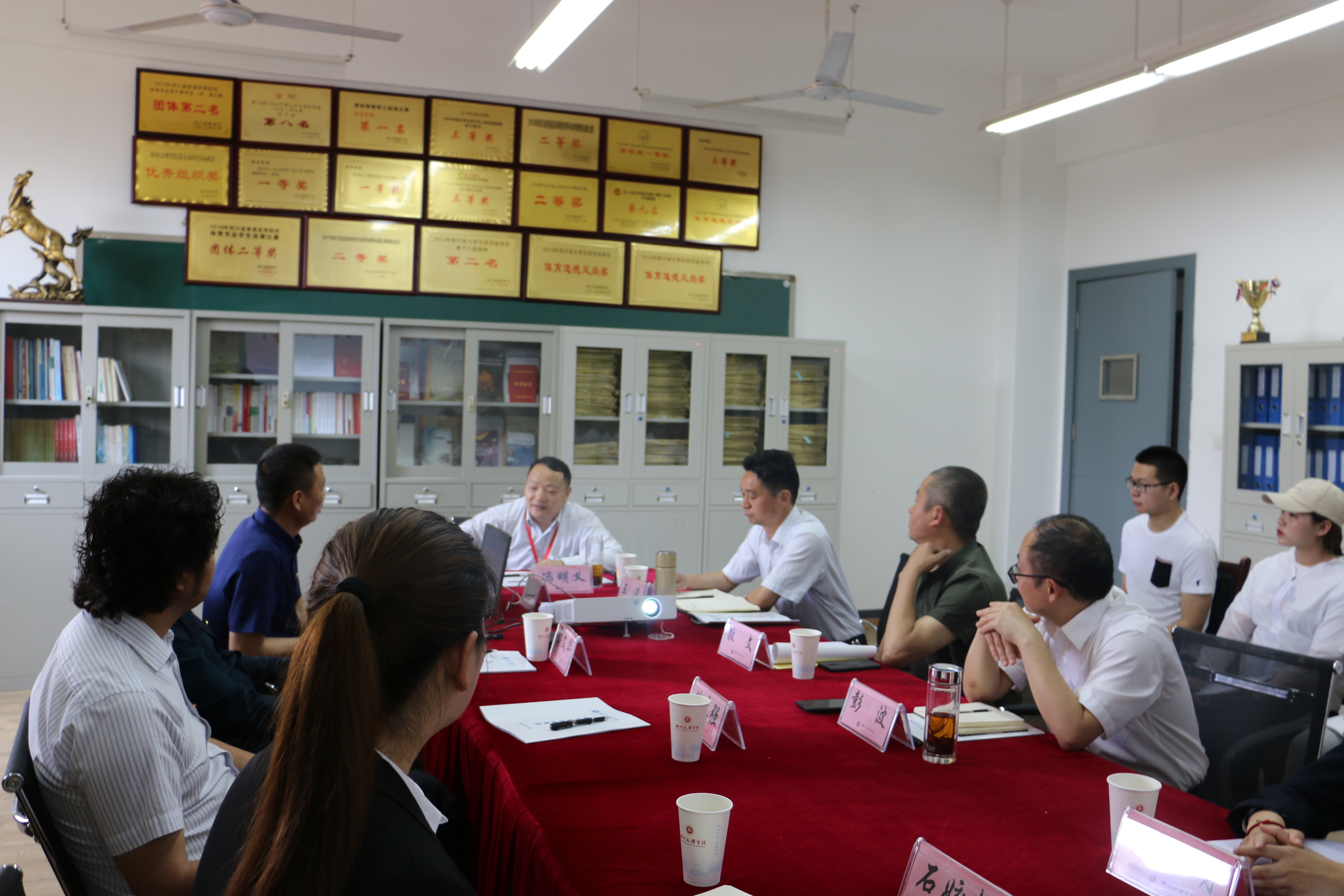 佘经理的汇报引起了冯教授的兴趣和关注。听取汇报后,冯教授就一专多能体育人才的内涵、体质健康测试的情况、员工考研状况、公司产品改革等等问题与与会的老师进行了交流。交流会持续了一个多小时,大家踊跃发言,会场气氛融洽。
