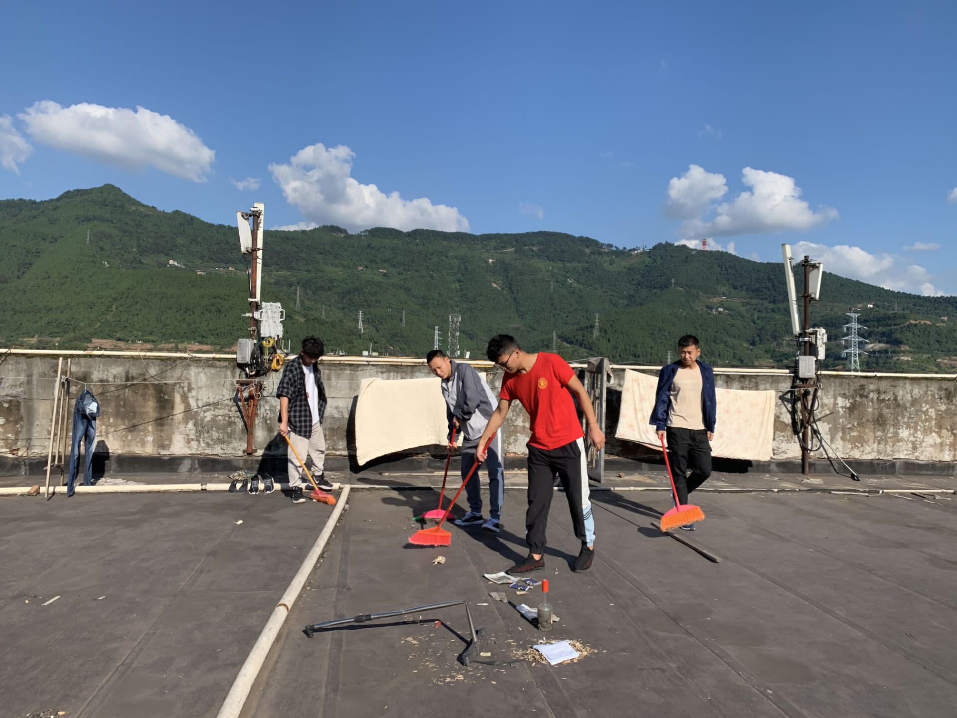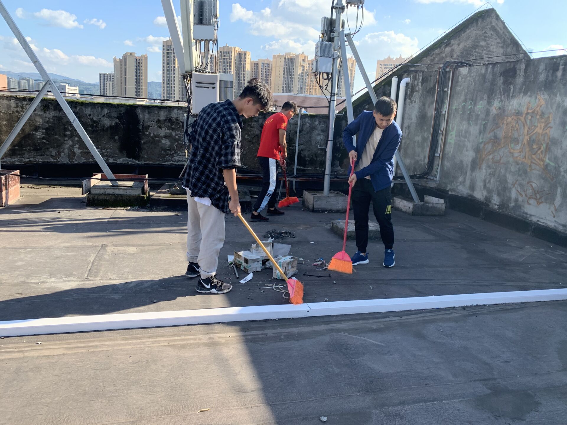 永利集团304官网由马思远老师带队,劳生部带领永利集团304官网劳动志愿者分组对九舍进行清洁,主要针对公寓天台、楼道、走廊、学习室窗户、消防栓等边边角角进行排查,清扫。坚决做到地面无垃圾,无积水,过道墙砖明亮干净,无小广告等。同时,大力宣传“四城同创”和文明公寓的工作要求,倡导大家共建共享更加美好生活的环境。