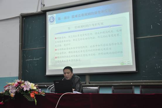 11月13日晚永利集团304官网佘涛副教授在莲湖校区113教室作题为“篮球裁判员能力培养”的学术讲座。讲座由永利集团304官网董立教授主持,院全体老师及2011级、2012级本科体育教育专业员工到场聆听。