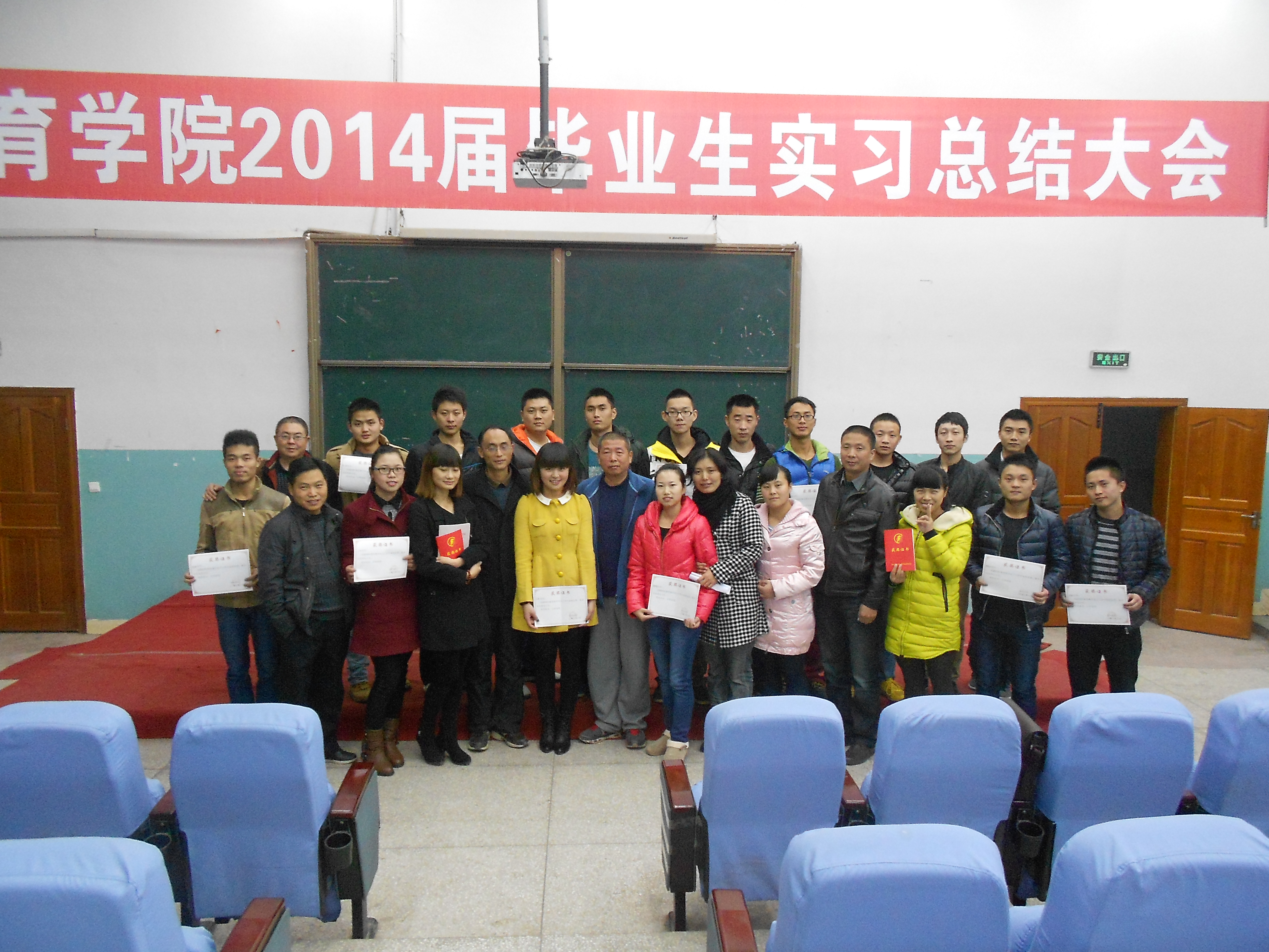 会议最后,教师们为本届优秀实习生颁发荣誉证书,永利集团304官网2014届本科实习总结大会在同学们热烈的掌声中圆满结束。