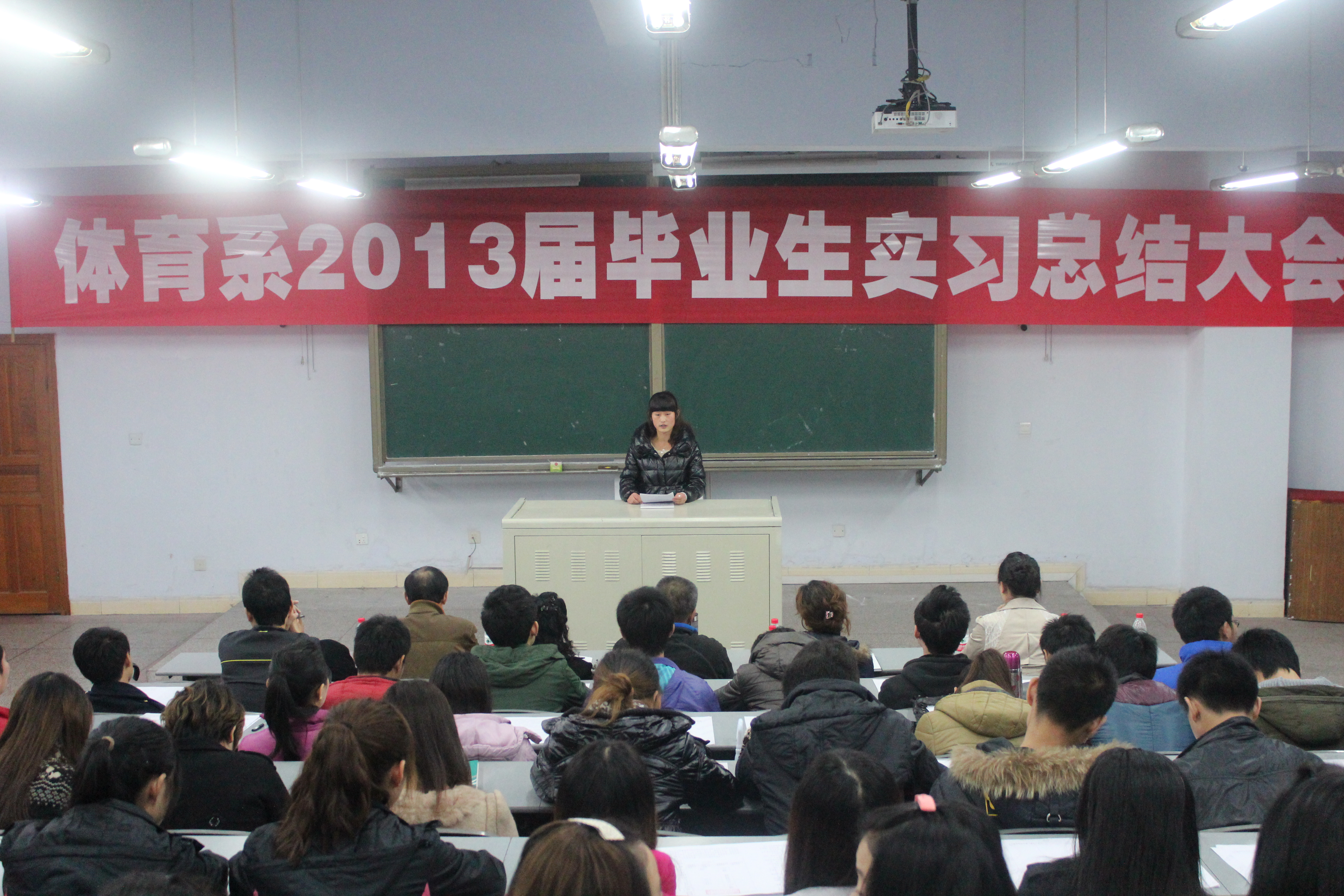 2012年11月15日下午4:30,永利集团304体育系2013届毕业生在莲湖校区教学楼125教室举行实习总结大会。此次大会由何其波同学主持,参加此次大会的有教务处曹科长、体育系主任董立教授、体育系副主任陈碧述教授、体育系李文华老师、体育系团总支书记兼辅导员李霞老师、体育系辅导员那明明老师,以及体育系2013届的全体毕业生。