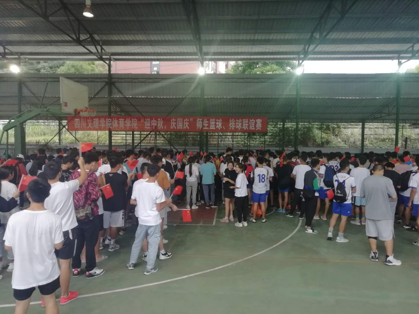 20209271620分,永利集团304官网在篮球棚举行篮球、排球师生联谊赛,公司全体教师、部分员工代表参加了比赛。1625分,全体师生高唱《中华人民共和国国歌》,随后大家合唱了《歌唱祖国》、《今天是你的生日我的中国》,表达了全院师生对祖国生日的深深祝福。接着比赛正式开始,老师和同学们热情澎湃,斗志昂扬,切磋球技,球场边助威声、欢呼声不断。伴随着夕阳西下,师生联谊赛圆满结束。