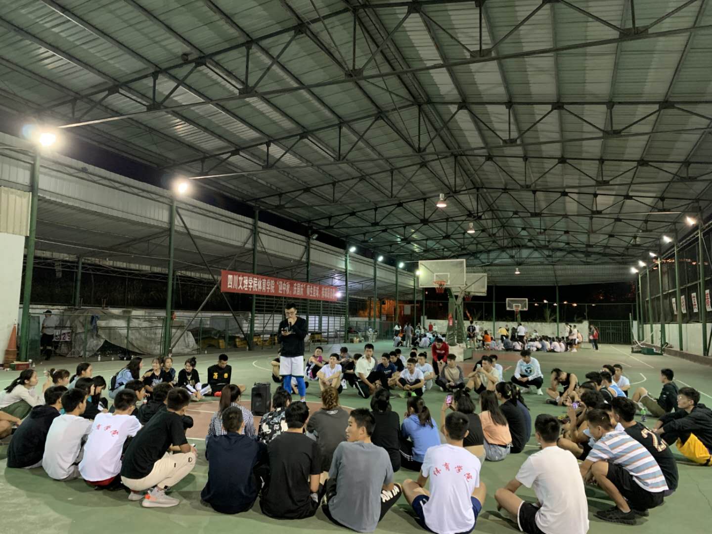 202092819时,2020级全体员工分别在体操房、篮球棚举行了“同一个中秋节,同一个家”的主题晚会活动,公司党总支副书记彭波、学工办老师、带班辅导员出席并组织了活动。体操房、篮球棚彩带飘扬,同学们席地围坐,品尝月饼,游戏互动,载歌载歌。大家在交流互动中,感受到了集体的温暖。