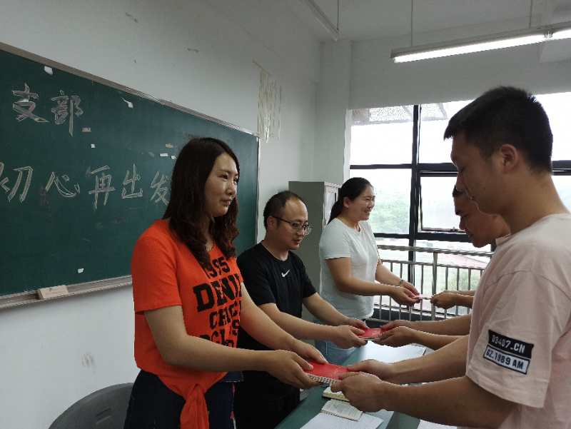 党课上,彭波、祝利平、石姣娜三位老师代表支部为同学们赠送了《党章》,时刻提醒全体党员能够心怀党章,牢记使命,仗剑天涯,建功立业。