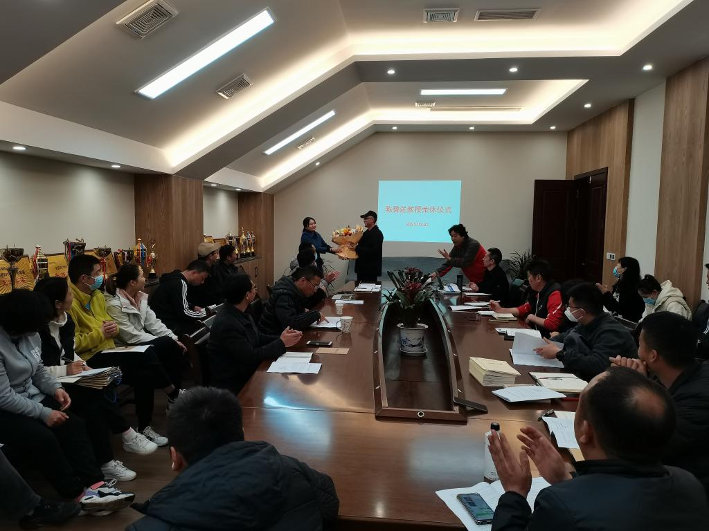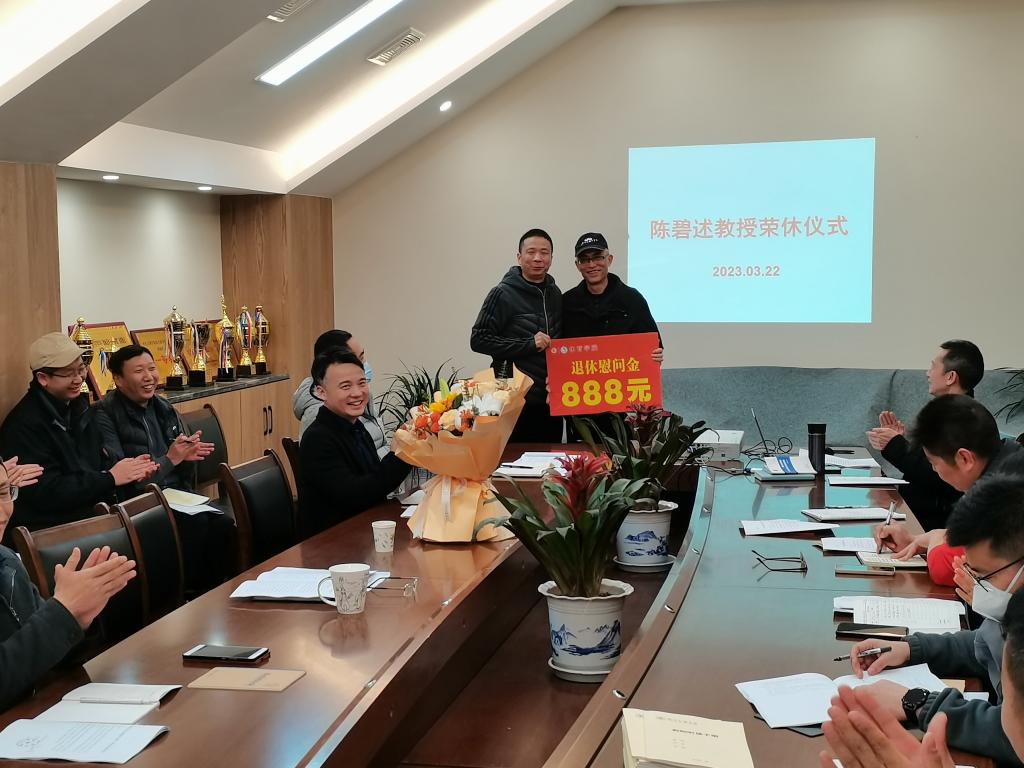 322日,永利集团304官网在体育馆117会议室为公司陈碧述教授举行了荣休仪式。仪式由党委书记王兆忠主持,公司全体教师参加了此次活动。