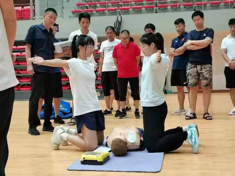 本次培训分两个环节围绕“异物卡喉”和“心肺复苏”两大内容。宋京林老师用生动诙谐的语言为老师们讲解原理、分析案例、介绍操作方法,在三位员工志愿者的配合下,耐心细致地为老师们讲解了技术要领。结合他在应急救护实践中经验,就重点事项做了特别警示和强调。接下来老师们来到体育馆内,三位志愿者现场做了心肺复苏规范的演示,认真观察学习后,老师们分三组在宋老师和志愿者们的指导下进行了实际操作。