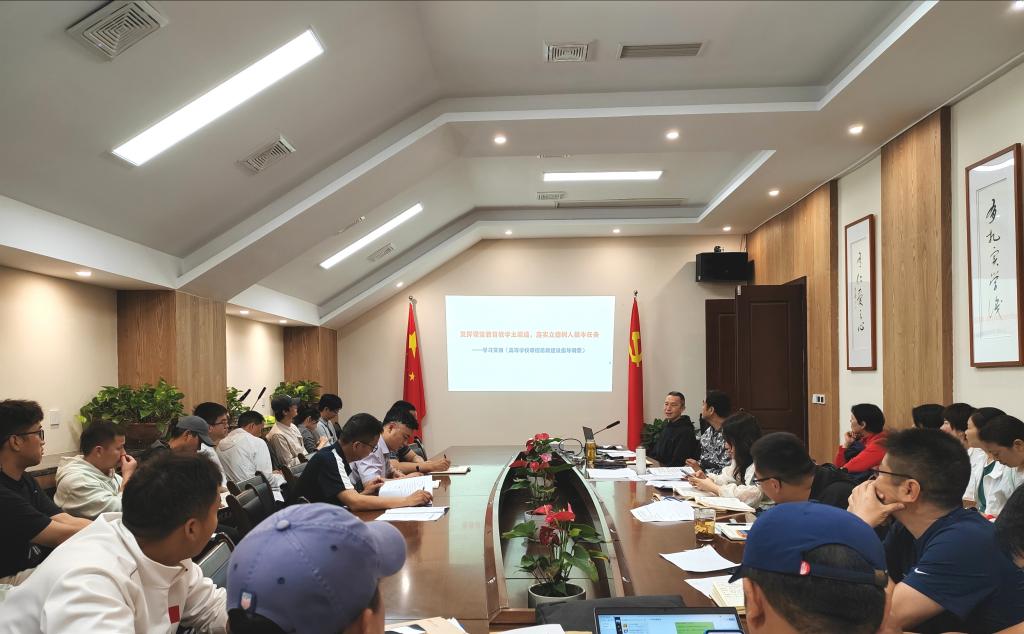 王兆忠在会上强调,全面推进课程思政建设是落实立德树人根本任务的关键战略举措。落实这一任务,需将价值塑造、知识传授和能力培养紧密融合,不可分割。教师作为教育的“主力军”,应充分利用课程建设这个“主战场”和课堂教学这条“主渠道”,确保所有高校课程都能承担起育人的责任。同时,要深入挖掘各类课程和教学方式中蕴含的思想政治教育资源,助力员工掌握事物发展规律,丰富学识,塑造品格,努力成为德智体美劳全面发展的社会主义建设者和接班人。随后,王兆忠从明确课程思政建设目标要求和内容重点、科学设计课程思政教学体系、结合专业特点分类推进课程思政建设、将课程思政融入课堂教学建设全过程、提升教师课程思政建设的意识和能力、建立健全课程思政建设质量评价体系和激励机制、加强课程思政建设组织实施和条件保障等七个方面带领教职工们全面学习了《高等公司课程思政建设指导纲要》。