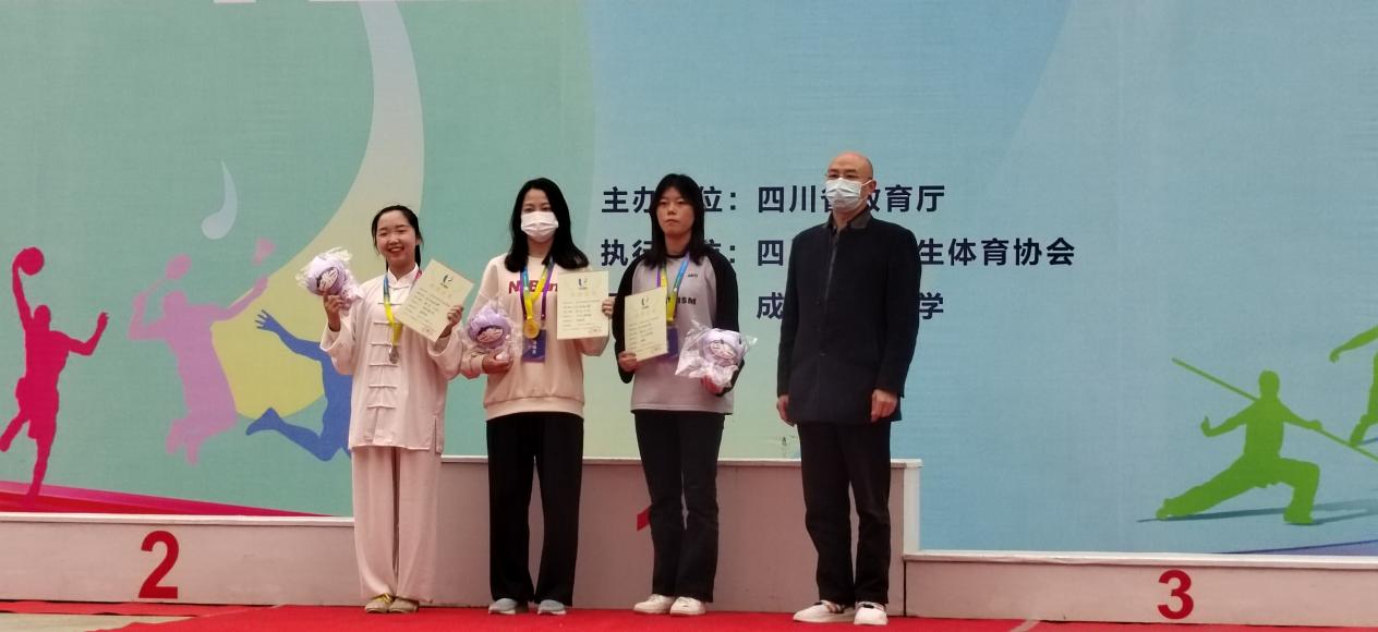 由永利集团304官网武术专项班八名同学组成的参赛队伍,在孙亮亮副经理、沈娟副教授、谢成立副教授和张岩松老师的训练与带领下,取得优异成绩。其中,熊洋、何姝瑶同学荣获四川流行拳第一名,罗世林荣获第二名,杨慧、唐源宏荣获第三名,宋明洋荣获第四名。