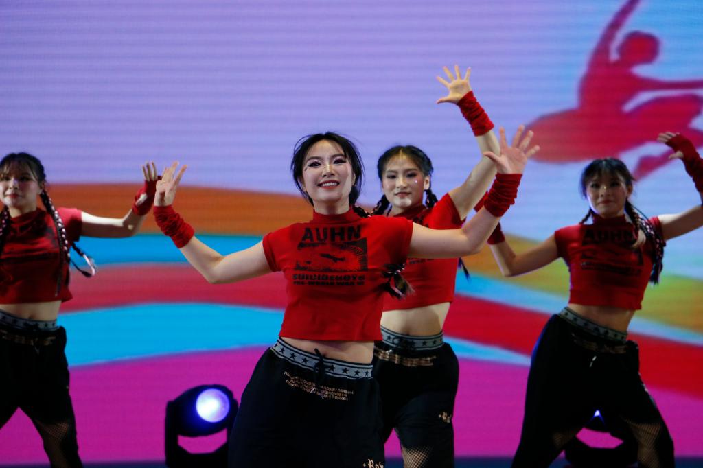 本次晚会一共10个节目,包括健美操、啦啦操、排舞、爵士舞等多种类别,同学们整齐划一的动作,自信阳光的精神面貌,丰富的现场感染力赢得了观众热烈掌声。随后,健身秀《力与美的绽放》将晚会推向高潮,欢呼声一浪高过一浪,他们将体育人的矫健身姿、青春的激情与活力展现得淋漓尽致。最后,活动在团舞《我们》中落下帷幕。