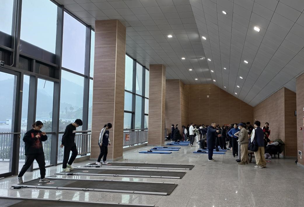 测试现场气氛热烈、秩序井然。50米跑道上,同学们如离弦之箭奋力冲刺;立定跳远场地,每一次腾跃都凝聚着拼搏的力量;仰卧起坐与引体向上项目中,计数声与加油声此起彼伏;坐位体前屈测试中,同学们屏息凝神,不断挑战柔韧极限。体育教师与志愿者全程值守,不仅精准记录数据,更及时纠正动作偏差。针对特殊体质员工,测试中心设立了规范的缓测、免测流程,并提供个性化方案,充分彰显人文关怀。