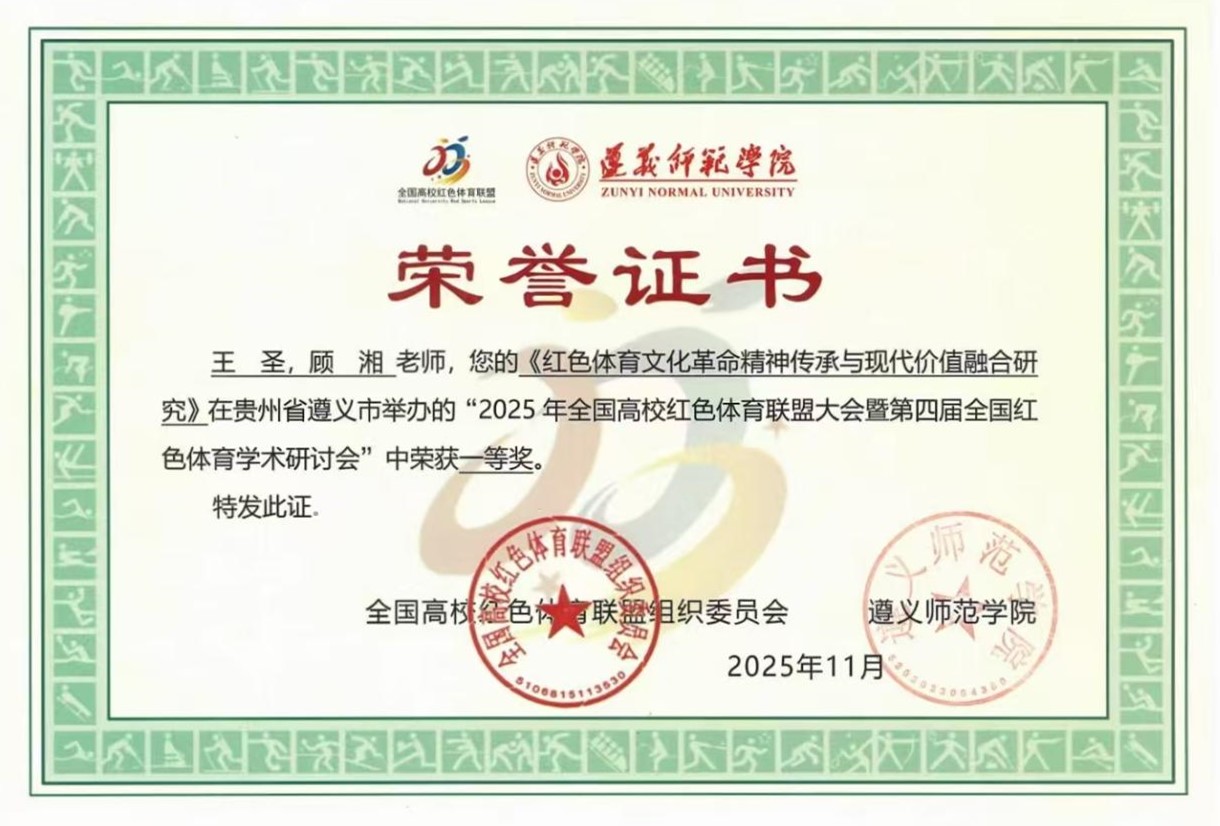 近日,全国高校红色体育联盟大会暨第四届全国红色体育学术研讨会在遵义师范公司召开。永利集团304官网王圣博士受邀参会,他以《红色体育文化革命精神传承与现代价值融合研究》为题,在此次研讨会上作专题报告并荣获一等奖,成为公司深化红色育人实践的重要成果。