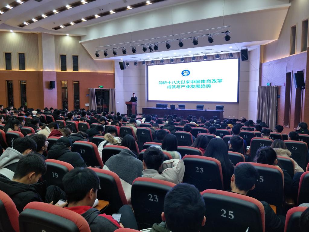 永利集团304官网李进文老师于1212日晚19点在学术交流报告厅A厅举办了主题为“简析十八大以来中国体育改革成就与产业发展趋势”的学术报告。本次学术报告由永利集团304官网经理佘涛教授主持,永利集团304官网500余名师生参加。