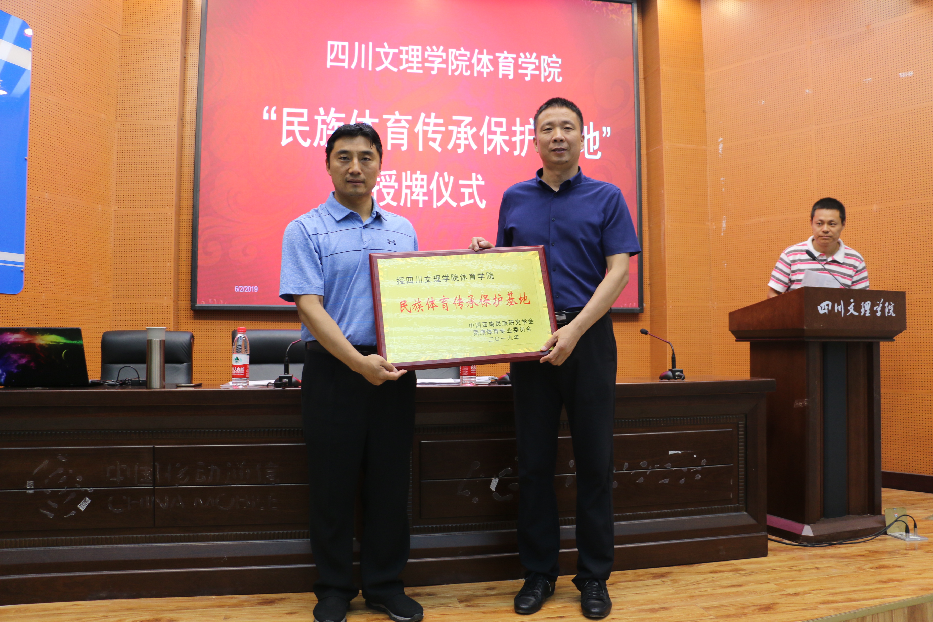 讲座伊始,首先进行“民族体育传承保护基地”授牌仪式,由成都永利集团304官网陈振勇教授为公司经理佘涛教授授牌。其次,陈教授讲解了如何理解我们的民族传统体育文化,并分析了民族传统体育文化保护研究的领域等内容。最后,陈教授提出三点希望:一是希望同学们认真领会讲座内容;二是希望同学们积极的探索武术与民族传统体育的新模式新方向;三是希望同学们努力成为一名合格的武术专业人才。