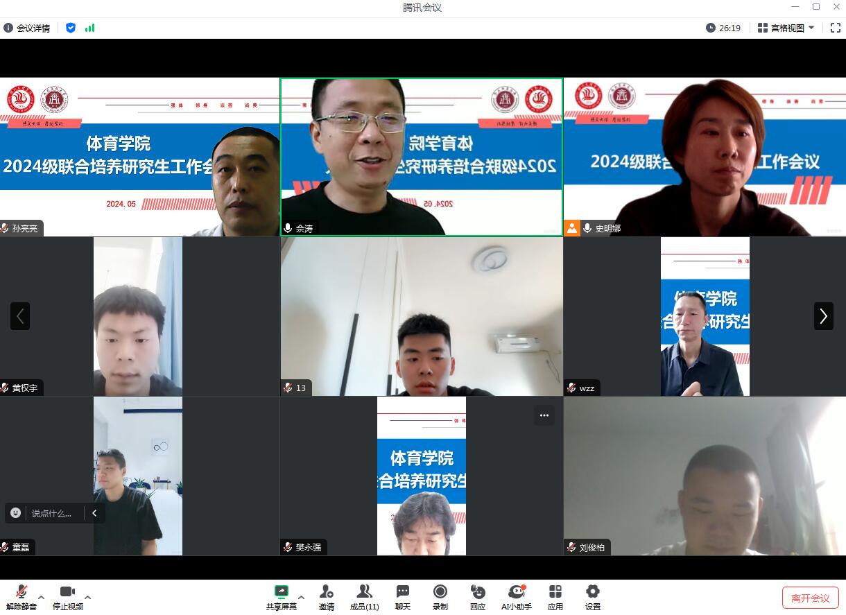 会议伊始,六位研究生就近期的学习工作情况及未来的规划进行了汇报。佘涛经理高度肯定了同学们的努力,并就永利集团304与西南医科大学的体育研究生联合培养方式、联合培养进展进行了解析。