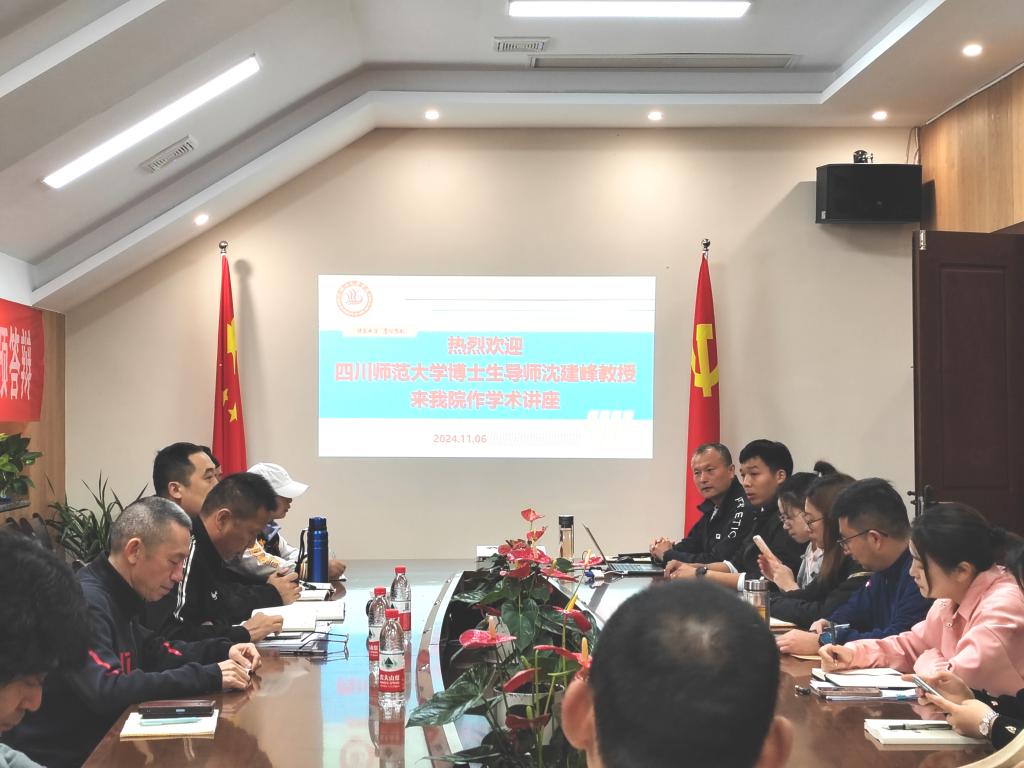 2024116日,四川师范大学永利集团304官网沈建峰教授应邀在体育馆117会议室为公司教师带来了一场题为“高质量发展背景下体育学团队建设与教师专业发展”的专题讲座。本次讲座由佘涛主持,公司教师积极参与,共同聆听了这场学术讲座。