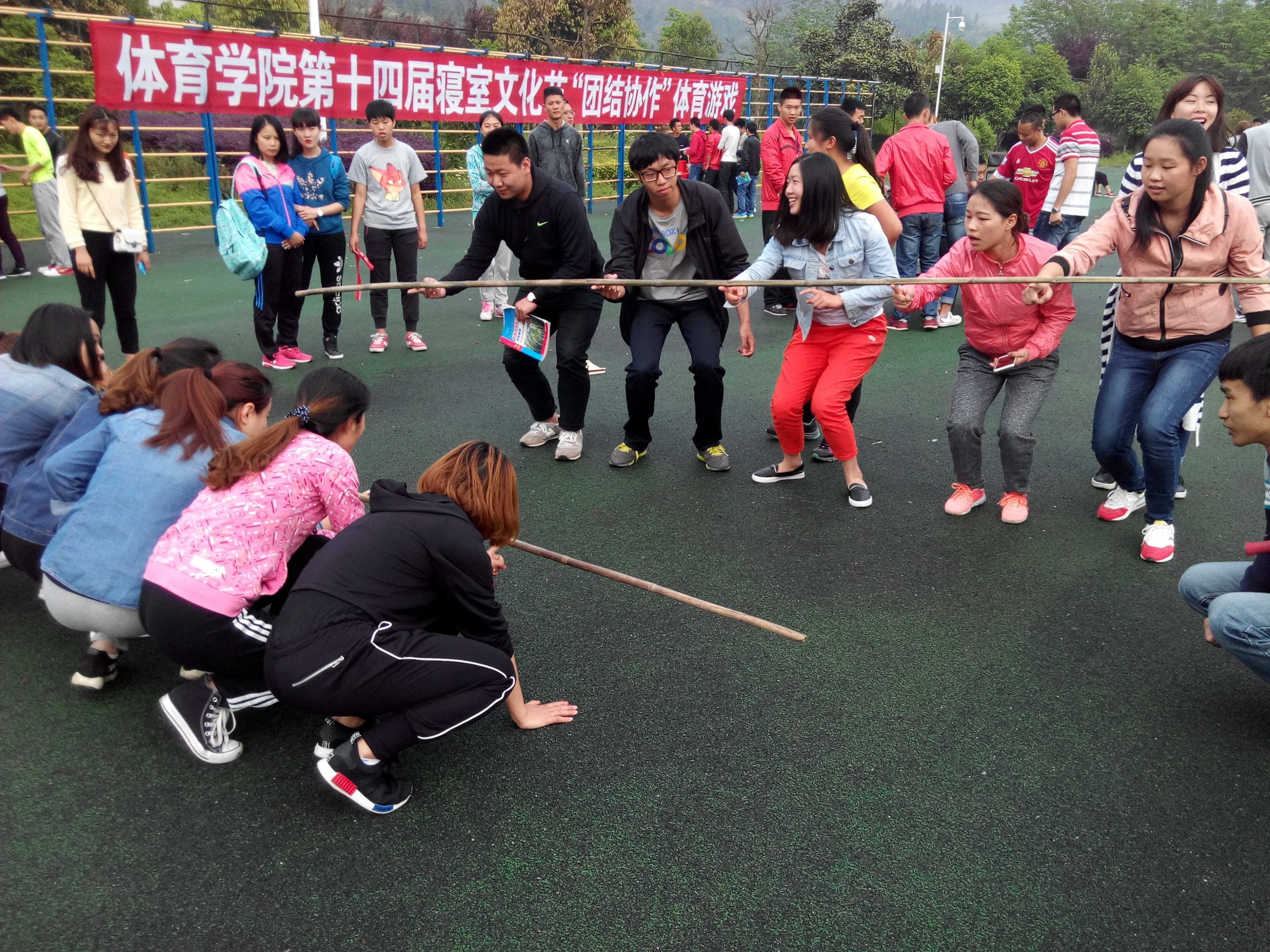 4月21日下午17:00,公司在田径场举行了第十届寝室文化节“团队协作”体育游戏活动,其中扳手腕、齐眉棍、袋鼠跳、十人九足、过电网等游戏深受员工的喜爱。本次还为员工准备了实用性较强的精美小礼品,员工以集奖券的形式领取小礼品。