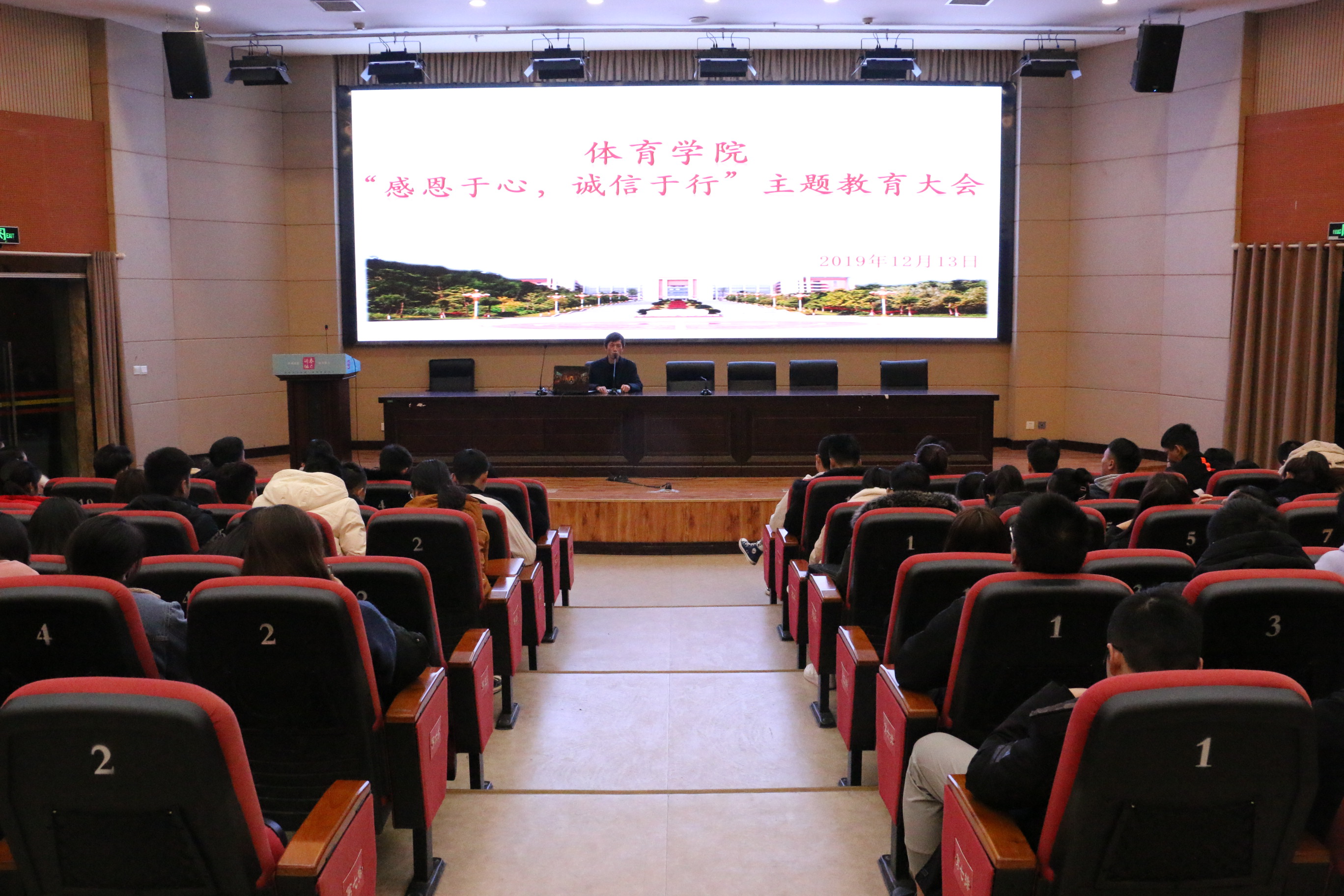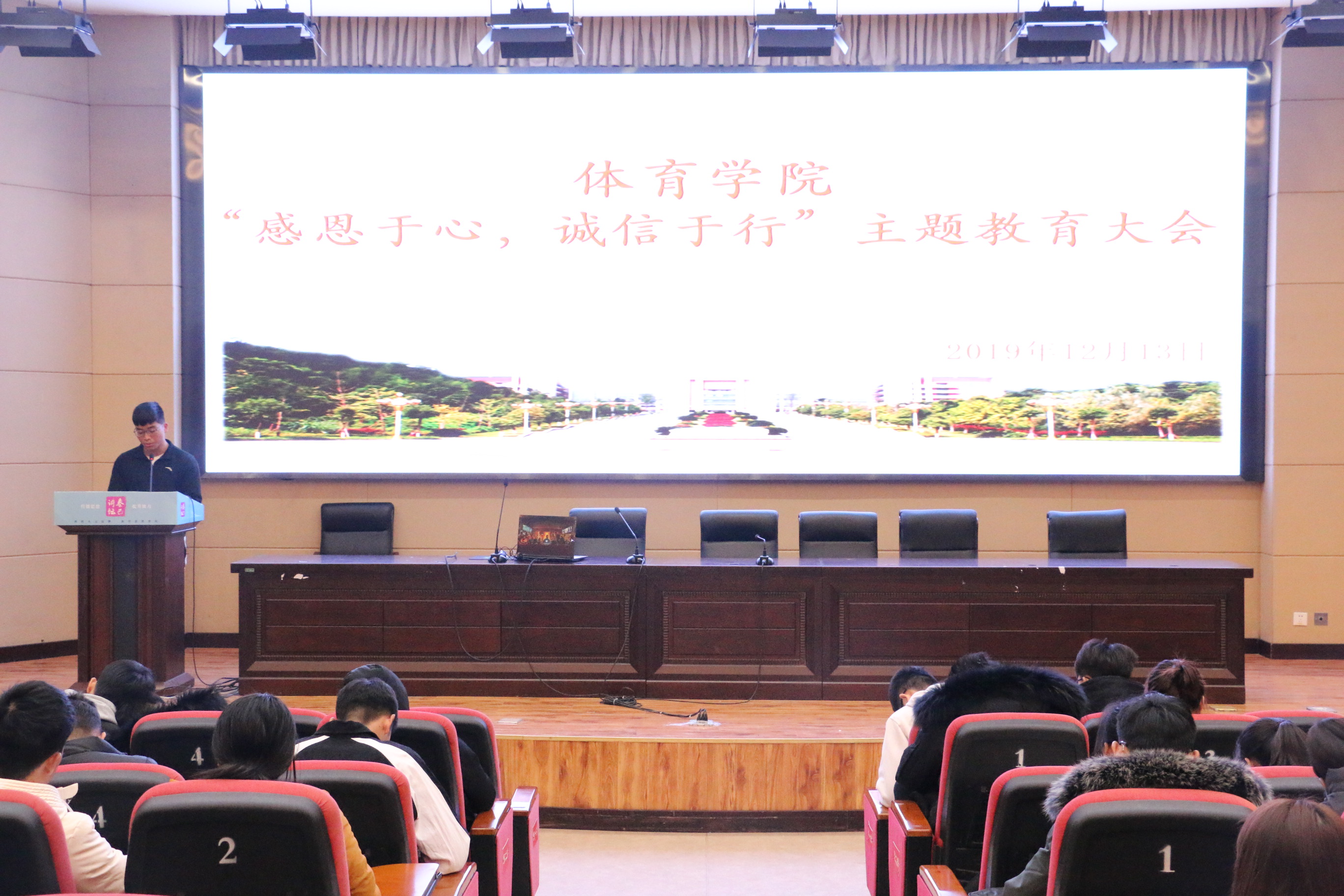 2019121317:30,在学术报告厅A厅召开公司召开2019年员工“感恩于心,诚信于行”教育大会。党总支书记王兆忠、经理佘涛、党总支副书记彭波、学工办主任祝利平、辅导员石姣娜以及永利集团304官网修业班全体员工参加了会议。