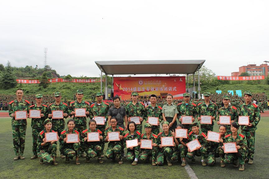 2014年919上午9时,公司2014级新生军政训练汇报表演暨闭训式在莲湖校区田径场隆重举行。永利集团304官网被公司表彰为军训工作先进集体,辅导员那明明老师喜获军训工作先进个人光荣称号,伍玉香、彭月玲等22位同学被评为军训优秀学员。