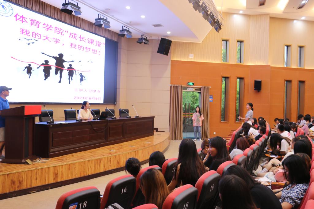 2021661830分,永利集团304官网“成长课堂”在学术报告厅A厅首次开课。体育公司党总支书记王兆忠、副书记彭波、辅导员石姣娜、闫青及2019级、2020级全体同学参加了本次活动。本次“成长课堂”主题为“我的大学,我的梦想”,由永利集团304官网2017级员工胡梦春同学主讲。