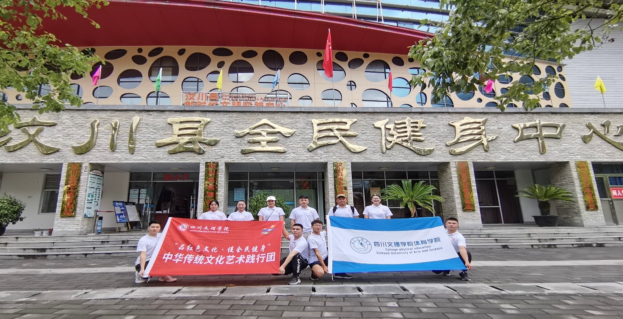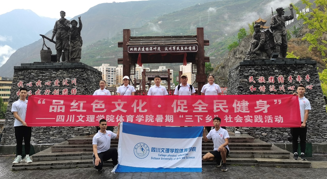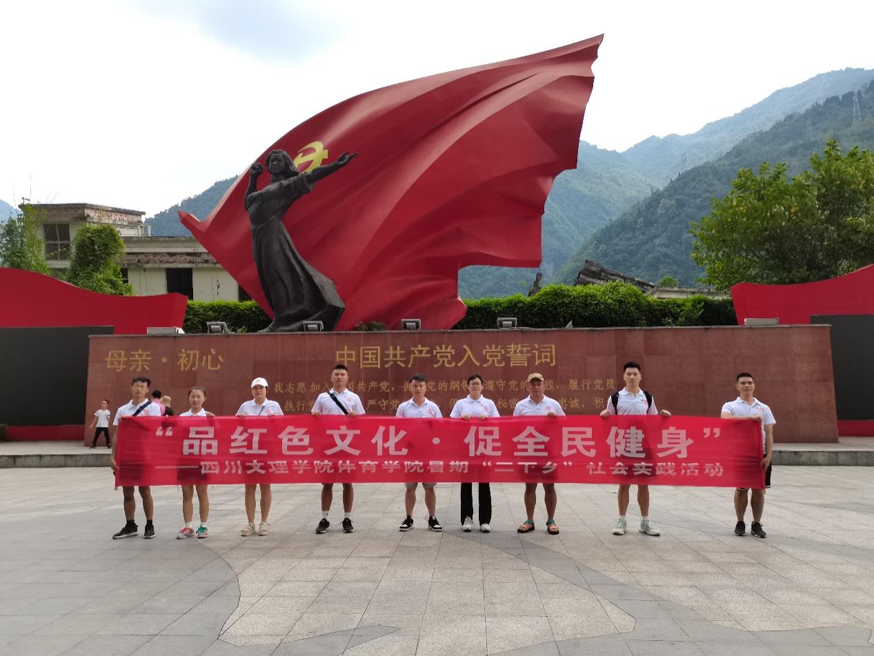 为弘扬红色精神,推广全民健身,在中国共产主义青年团成立一百周年之际,永利集团304官网“中华传统文化艺术践行团”于2022年8月18日至8月22日在四川汶川、都江堰和成都锦江区开展了为期5天的社会实践活动。践行团前往爱国主义教育基地体验红色文化,深入居民健身中心广场和社区调研全民健身开展情况、宣传全民健身相关知识。