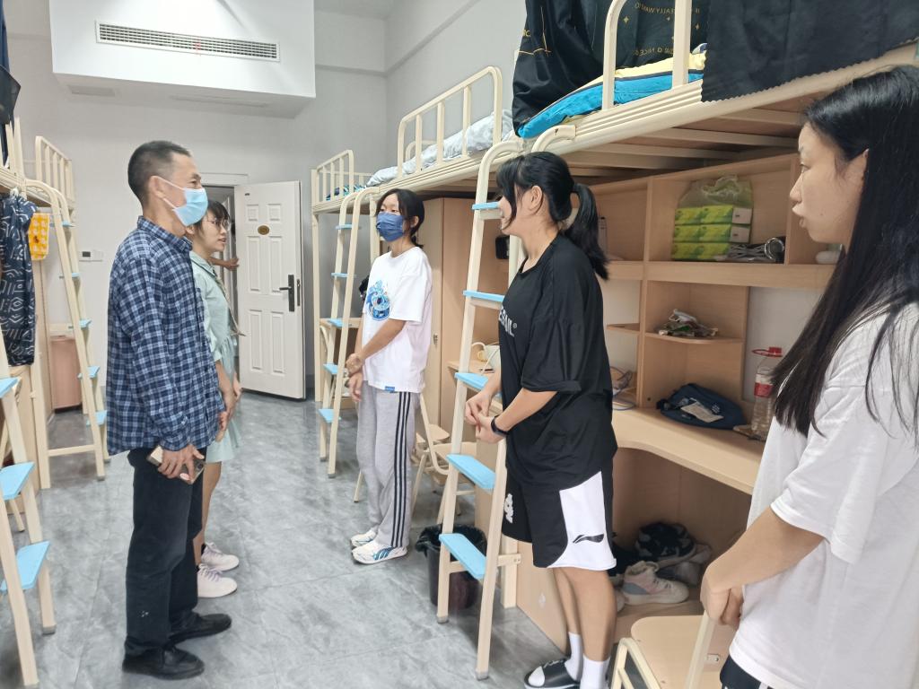 随后,走访人员分六组分别前往公司员工所在楼舍。在走访过程中,老师们仔细查看了宿舍的安全状况,认真聆听了同学们的建议和意见,耐心地对员工们做了要求和提醒。特别强调了严格遵守并落实疫情防控的相关要求,努力克服疫情防控常态化下的线上线下混合式教学中的困难,同时要求员工务必提升安全意识,细化安全措施,希望同学不断加强自我约束、自我管理和自我提升的自觉性和有效性。