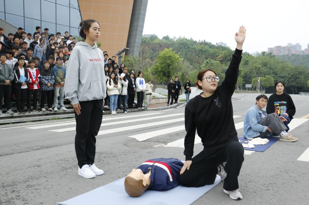 本次演练模拟一楼发生火灾,员工身在一楼,在火灾发生初期从安全通道有序疏散。随着警铃响起,全体员工快速响应,按照指定路线疏散至室外集合点,3分钟内完成了疏散和集结。随后,应急救护实操演练正式开始,分别就心肺复苏+AED、伤情包扎、消防器材使用、伤员转运等项目进行了演练和观摩。演练过程中,靳书记就一些关键环节向同学们进行了讲解,用实际案例对同学们进行了警示教育。他在总结中指出,在真实场景下,同学们要根据实际情况合理处置,若是小火,要能正确使用消防器材,及时扑灭,若是大火,要尽量逃离现场或避开,在安全区域等待救援。不可盲目行事,“教条式”逃生只会酿成悲剧。他强调,演练就是实战,安全这根弦永远都不能松懈,宁可备而不用,不可用时无备。