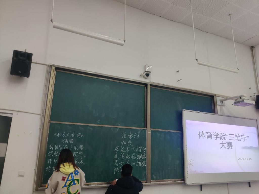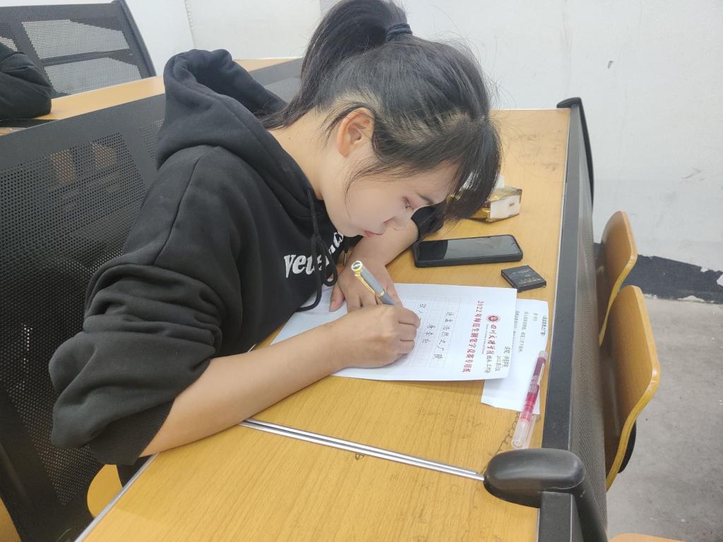 11月中旬至下旬,经宣传动员,班级推荐,自愿报名等方式,共50余人参赛。决赛设在艺术传媒大楼教室,书写内容为现场随机抽取。选手们态度端正,认真书写,笔画流畅,布局合理,展现了公司学子较好的“三笔字”功底。经过评选,每个项目评出一等奖1名,二等奖2名,三等奖3名。其中,20228班王欣颖获毛笔组一等奖,20215班范鹏程获钢笔组、粉笔组一等奖。