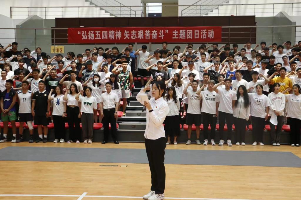 54日中午12:30,在体育馆开展“弘扬五四精神,展现青年风貌”团日活动。活动中,举行了新团员集体入团宣誓和老团员重温入团誓词仪式,集中观看了五四运动纪录片《壹玖壹玖》,另有合唱《阳光总在风雨后》和《团结就是力量》、中华武术和朗诵《与时代同行·与祖国同行》等一系列节目表演。