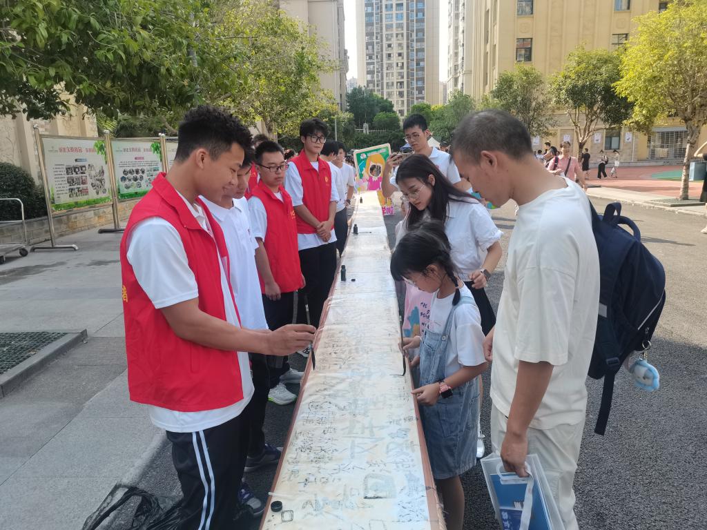 活动中,志愿者身着统一服装,现场布置井然有序,以饱满的热情引导莲湖一小一年级新生及其家长开展新生入学文化体验活动,包含摸吉祥物、击鼓明志、卷轴写人字、扎染体验等项目,象征着中华传统文化的传承,为莲湖一小一年级新生们营造了一次难忘的入学体验。