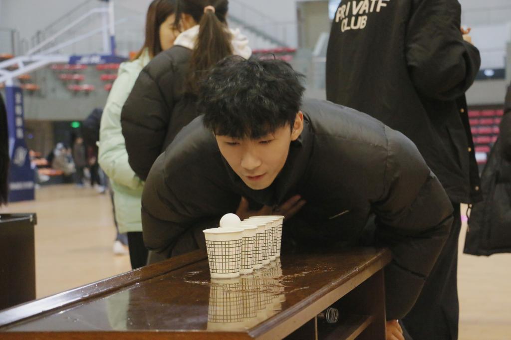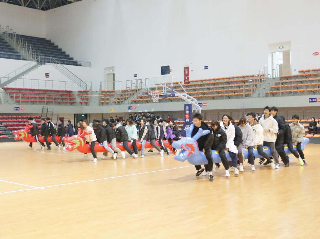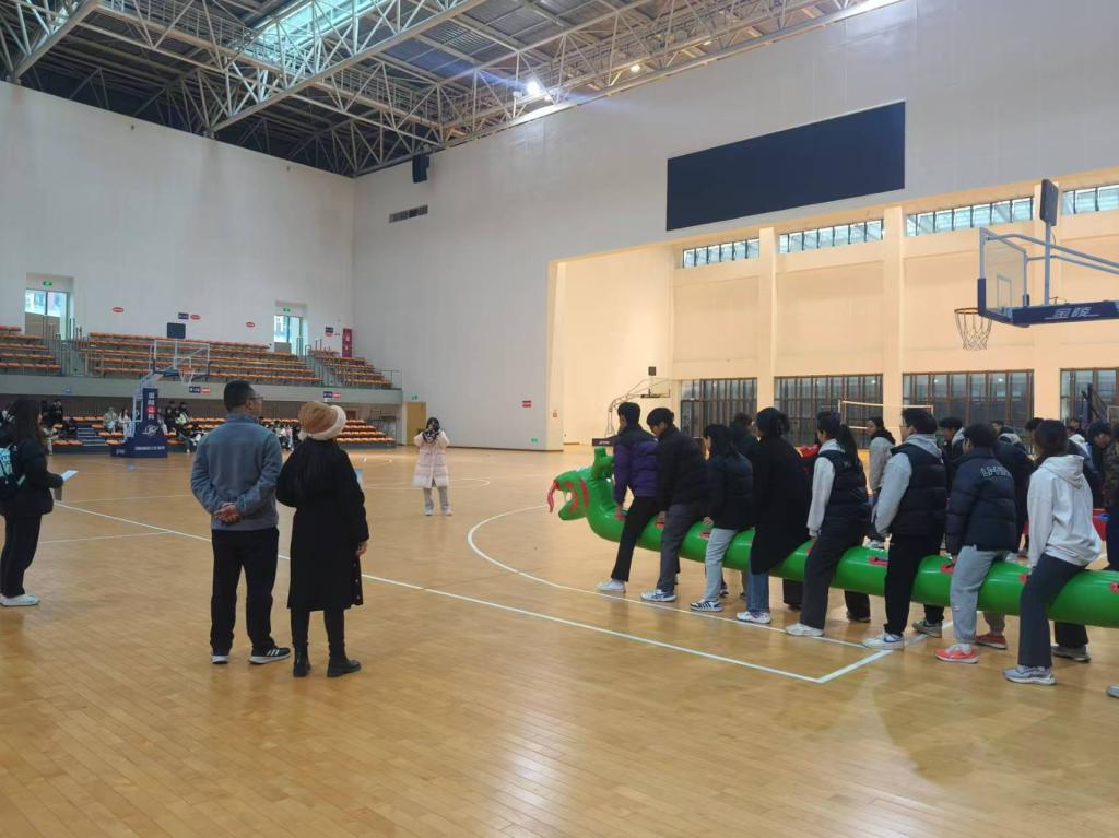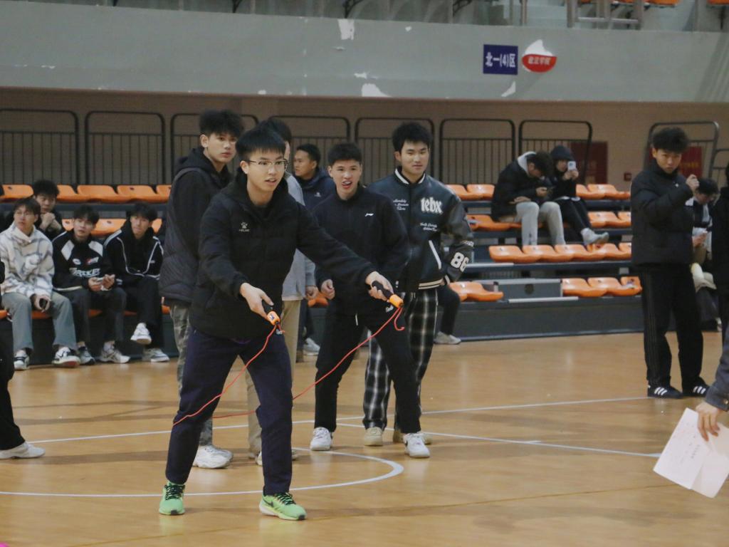 活动现场热闹非凡,欢笑声与加油声交织回荡。在团体项目“毛毛虫”和跳绳接力中,同学们配合默契,尽显团队精神。“毛毛虫”比赛里,各参赛小组的成员们步调一致,口号铿锵有力,齐心协力冲向终点,生动诠释了团结协作的强大力量。跳绳接力环节,选手们身姿矫健,跳绳在空中飞速旋转,队友间交接流畅,过程紧张刺激且有条不紊。个人项目翻山越岭和蒙眼击鼓亦是精彩纷呈。翻山越岭项目中,同学们凭借出色的身体协调性与平衡感,跨越重重障碍,展现出坚韧不拔的毅力与勇气。蒙眼击鼓则考验参与者的方向感与心理素质,他们蒙上双眼,在队友的引导下,坚定地迈向目标,敲响战鼓,现场的欢呼声与掌声此起彼伏。