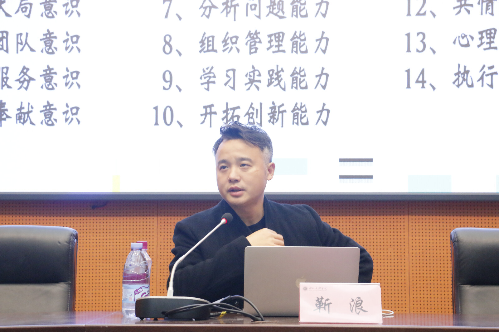 2024 12 11 16:30, 公司团总支在学术报告厅B厅举办了“宝剑锋从磨砺出——谈谈员工干部的自我修养”为主题的讲座,党委副书记靳浪担任主讲,团总支员工会干部、干事和各班班长团支书参会。讲座由学工办主任兼团总支书记祝利平主持。