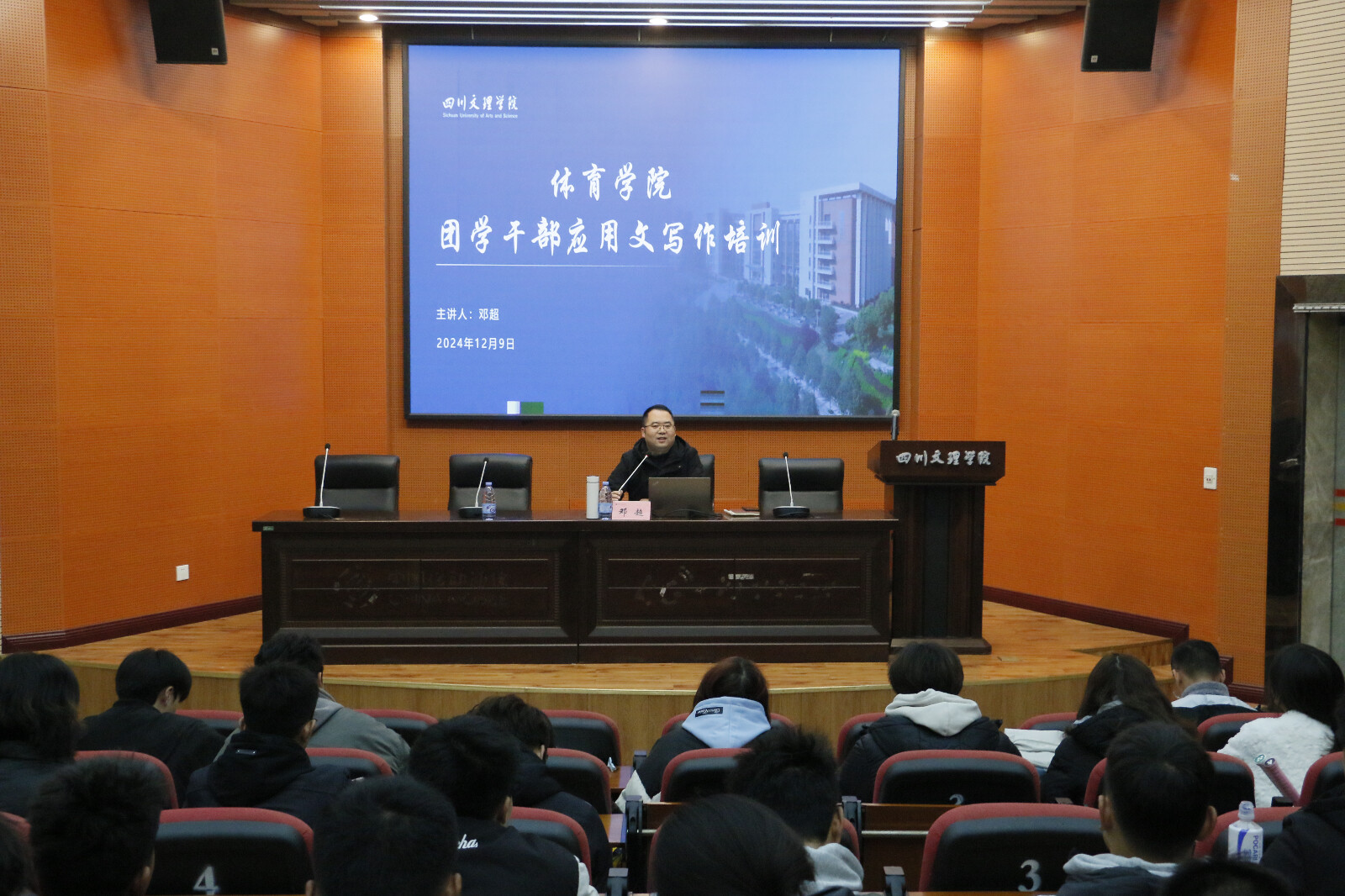 为提升团学干部的应用文写作能力,2024129日,永利集团304官网在莲湖校区学术报告厅B厅开展团学干部应用文写作培训,专职辅导员邓超担任主讲人。体育公司党委副书记靳浪、学工办主任兼团总支书记祝利平、专职辅导员闫青、李波及团总支、员工会干部、各班团支书、班长参加培训。靳浪主持培训。