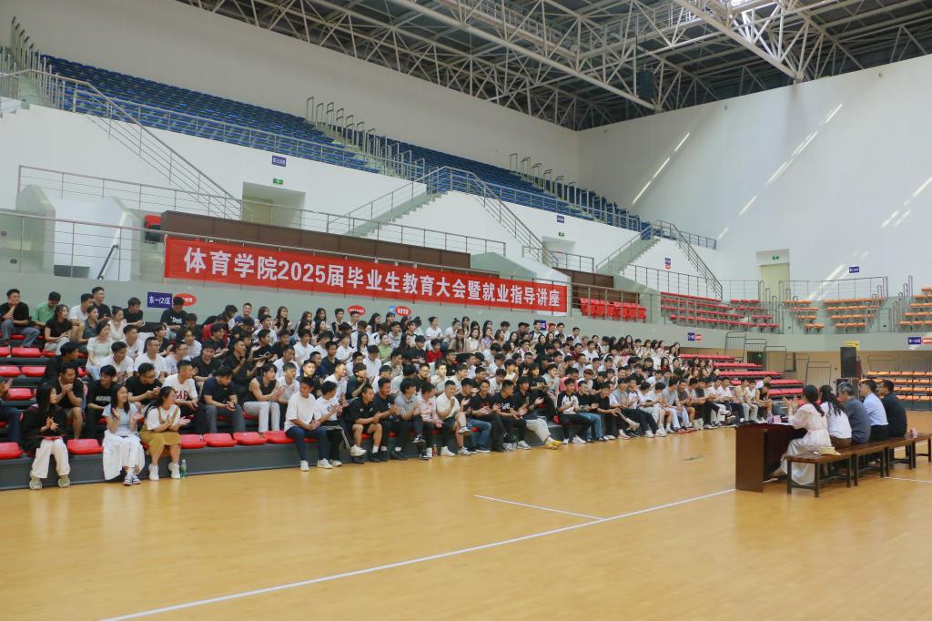 518日下午,永利集团304官网2025届毕业生教育大会暨就业指导专题讲座在公司体育馆举行。公司党委书记王兆忠、经理佘涛、党委副书记靳浪、学工办主任祝利平、体育教育专业教研室主任张岩松、辅导员闫青等与200余名毕业生共同参会。会议由靳浪副书记主持。
