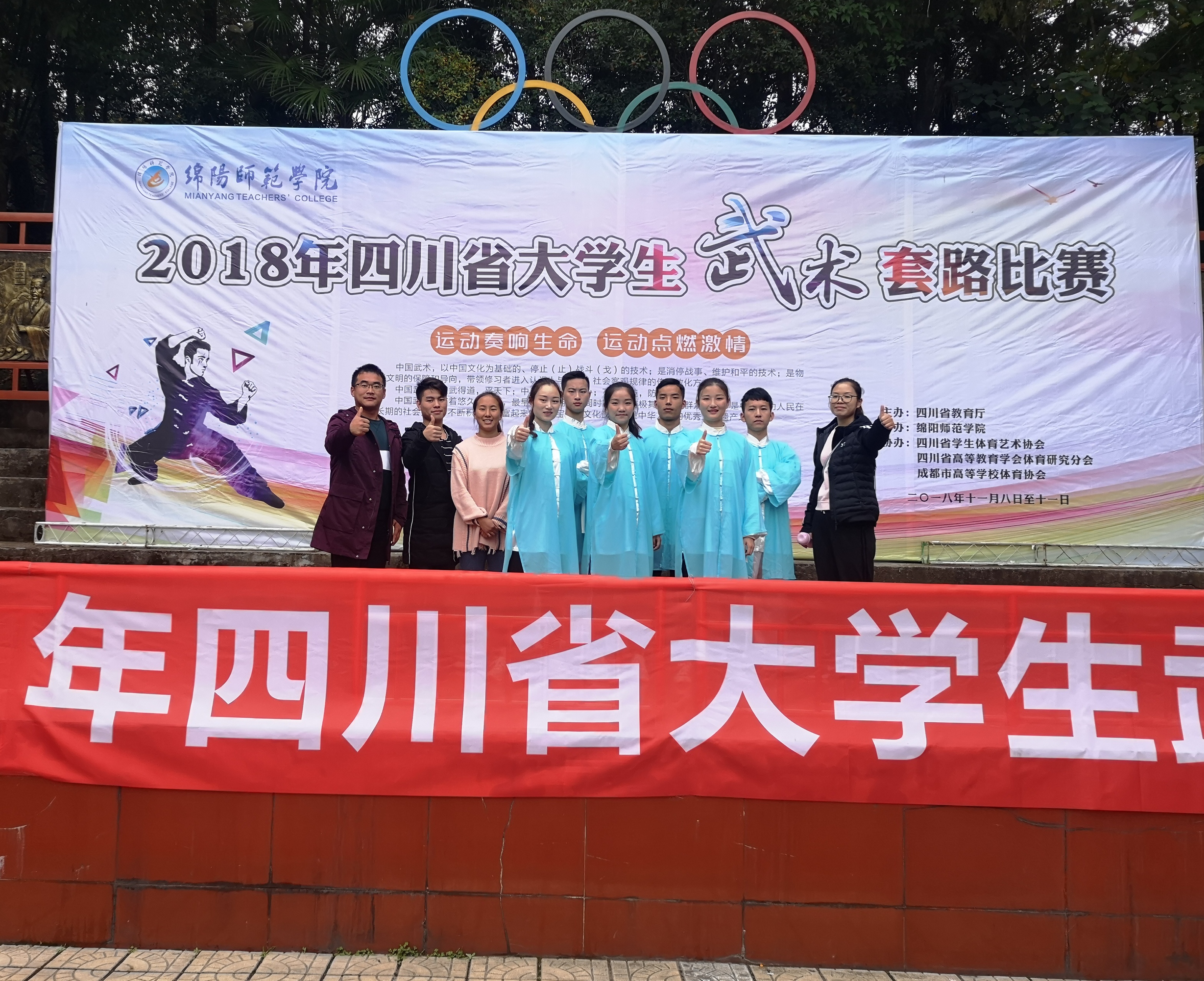 大赛吸引了来自四川省30余所高校、600余名师生参加。公司有沈娟、谢成立及张岩松老师带队,8名同学参加比赛。经过激烈的角逐,公司荣获团体二等奖、集体项目一等奖、女子太极拳第一名、男子棍术第四名及体育道德风尚奖等优良佳绩。